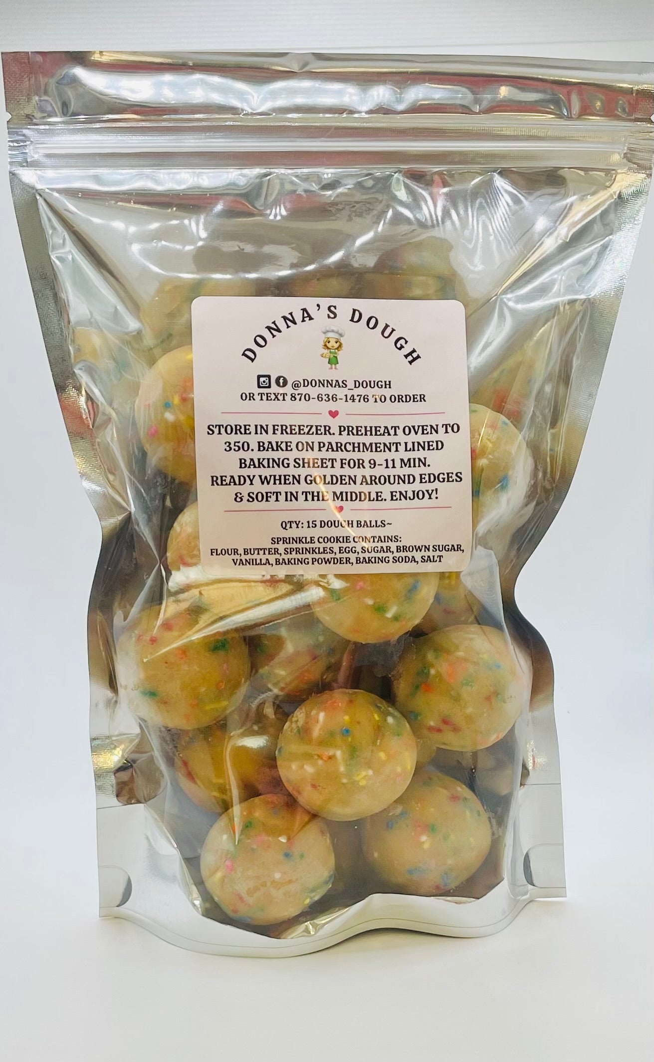 My daughter's favorite flavor cookie, full of fun rainbow sprinkles! Each bag contains 15 frozen dough balls!